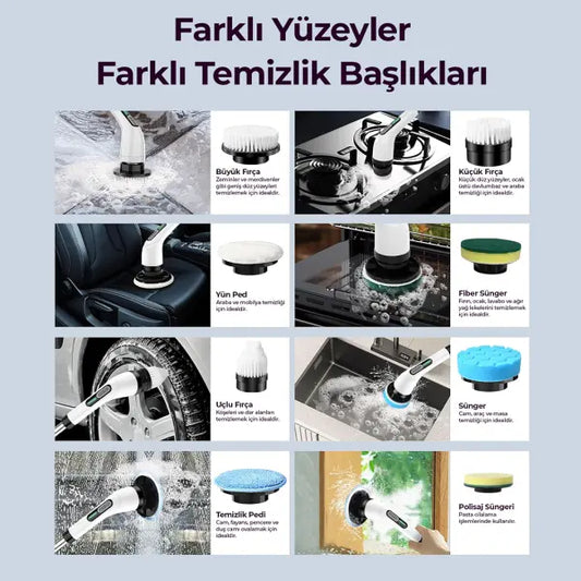 TASARRUF EDİN %43Super Cleans™ Şarjlı Temizlik Fırçası Seti